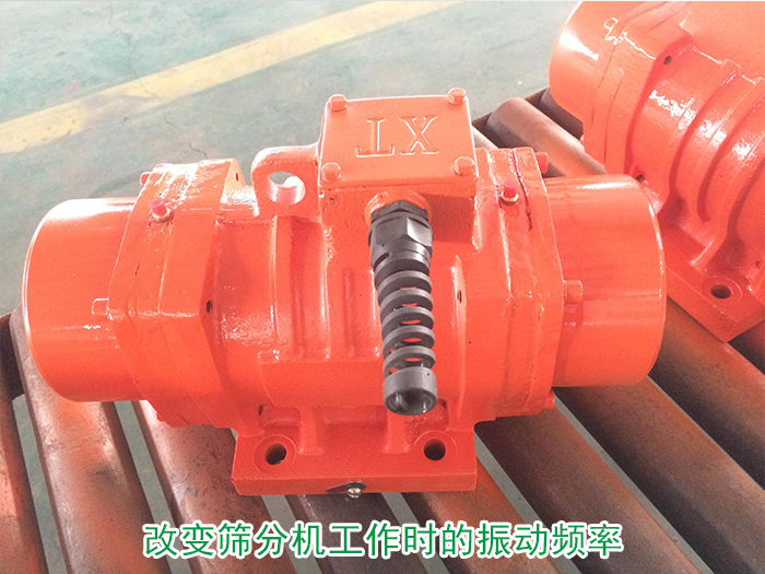 可改變篩分機工作時的振動頻率與其自身固有的振動頻率為不一致的頻率,可通過振動電機改變篩分機的振動頻率從而達到防止共振的目的。(可調(diào)節(jié)電機兩端的偏心塊夾角來改動激振力的大小,夾角小,激振力變大,振幅變大;反之,夾角變大,激振力變小,振幅變小)。