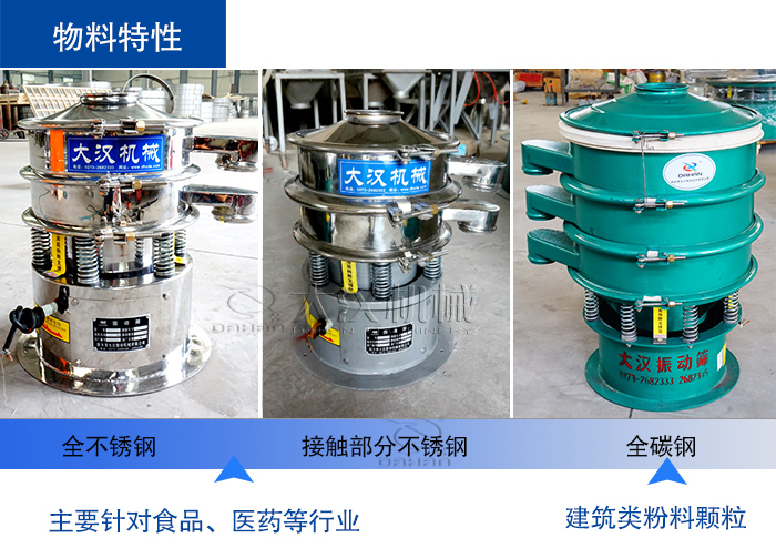 您可根據物料特性主要是決定您是適用哪種材質的篩分機